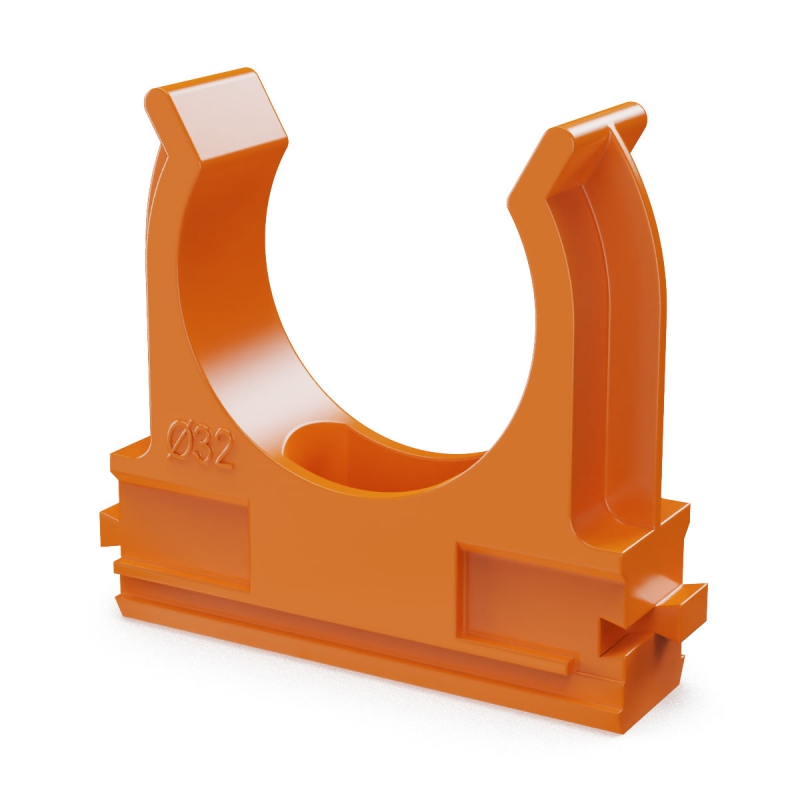 Крепёж-клипса для труб АБС-пластик оранжевая d32 мм (25шт/500шт уп/кор) Промрукав | код PR13.0105 | ПРОМРУКАВ